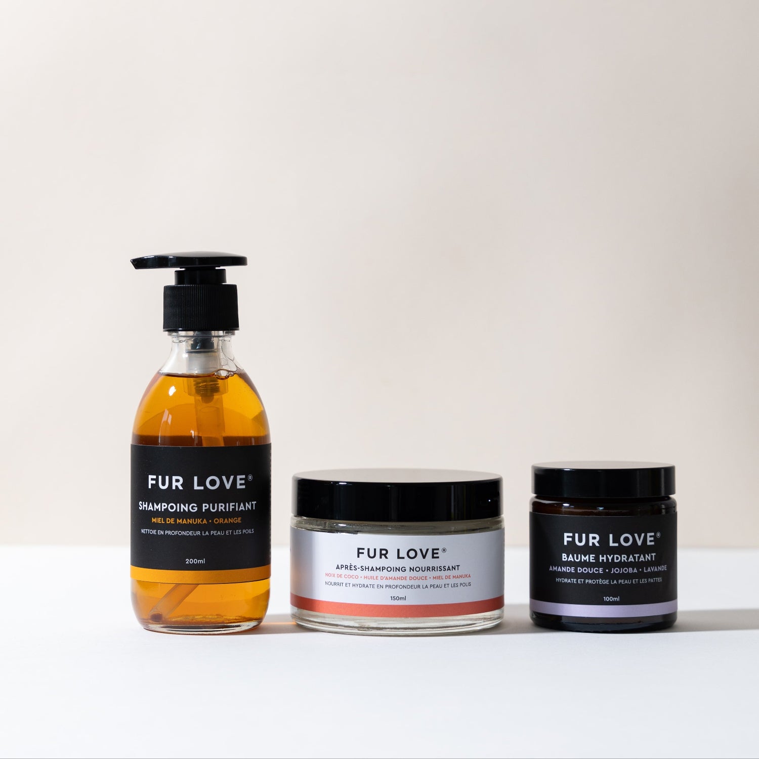 Utilisation quotidienne du shampoing purifiant, de l’après-shampoing nourrissant puis du baume hydratant